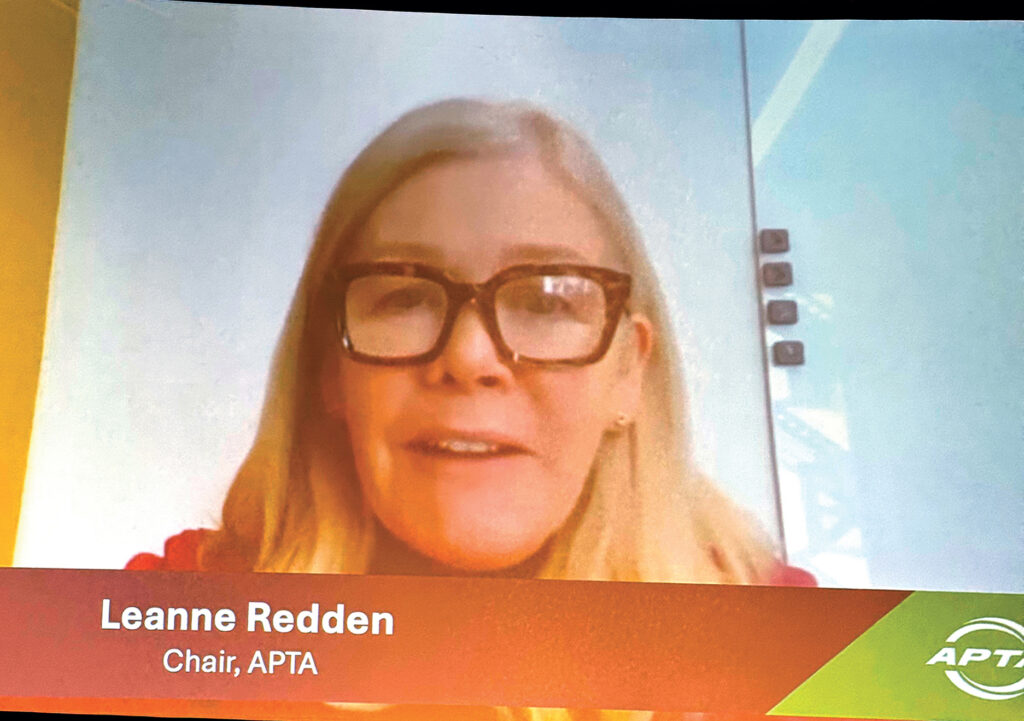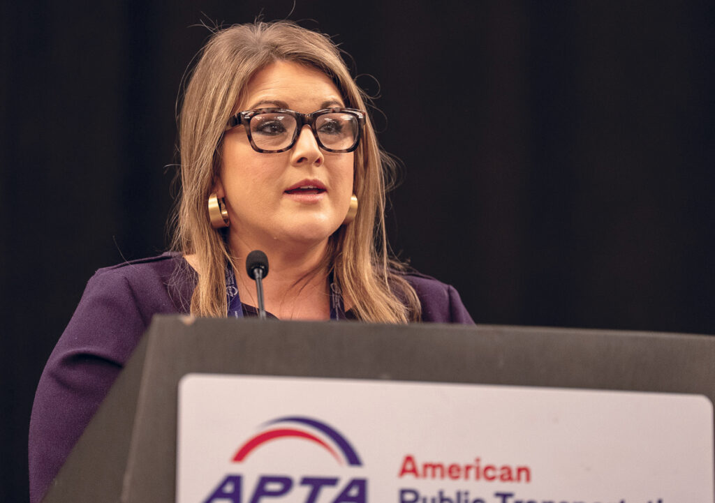 APTA Chair Leanne Redden, executive director, Chicago Regional Transportation Authority, addressed attendees via video, saying that, “When I became APTA chair last fall, I pledged to make my top focus the passage of a new five-year Surface Transportation Authorization bill. Everything we do—every day—should contribute in some way to winning passage of a law that helps our industry innovate, grow, and meet new demands and bigger dreams. APTA’s Legislative Committee has done a remarkable job of developing close to 60 pages of recommendations for a new bill. Now, we need to convince lawmakers in Washington to include as many of these provisions as possible in the legislation, and then we must secure its passage.”