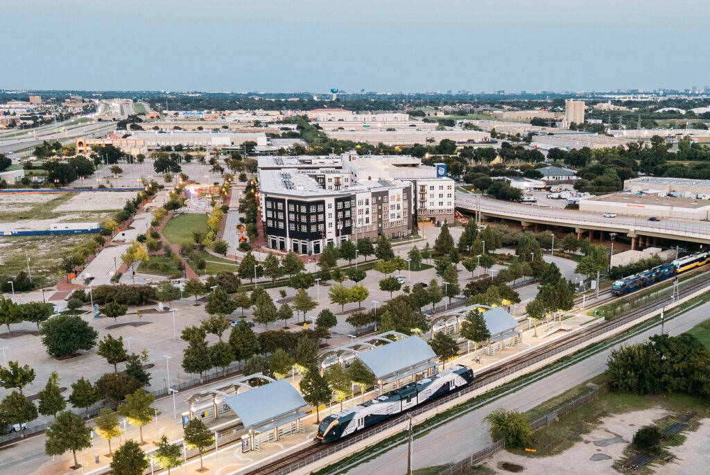 The project transforms a 25-acre site that formerly housed a big-box home improvement store and the former Carrollton Transit Center into a mixed-use, transit-connected community. The redevelopment is the result of a partnership among DART, the City of Carrollton, and Integral, illustrating how coordinated planning between transit agencies and local governments can reshape underutilized land around high-capacity transit.