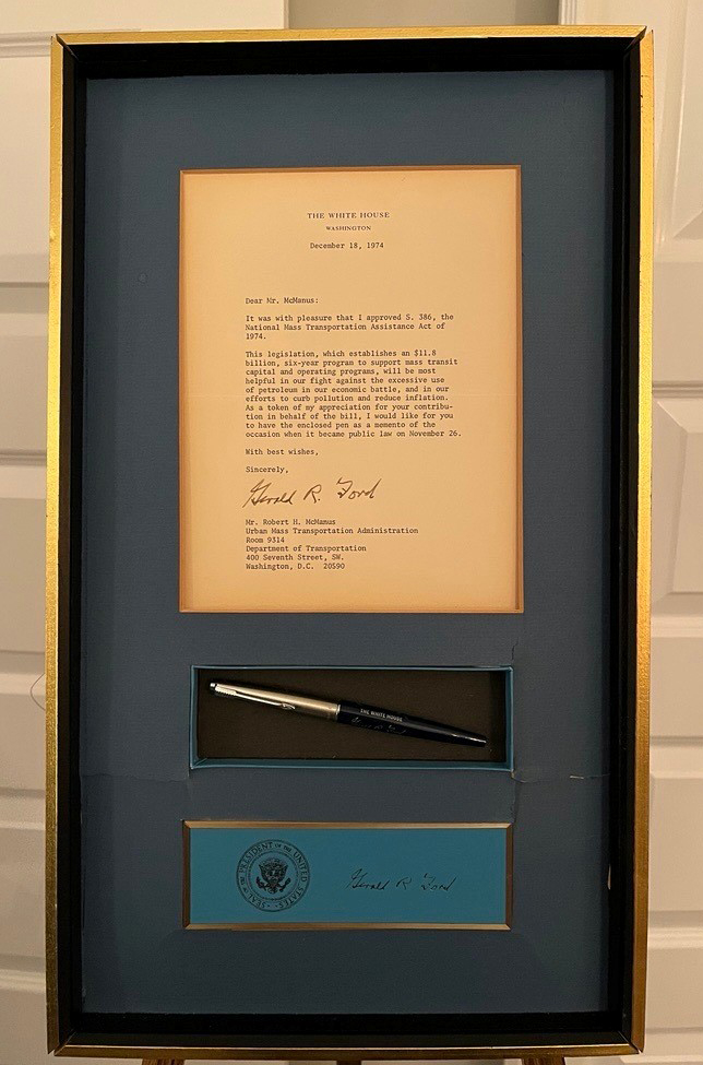In the 1960s, he joined the federal government at the Housing & Home Finance Administration, where the federal transit program was then housed. When the program moved to USDOT and became the Urban Mass Transportation Administration—now the FTA—McManus served as the senior career official. In that role, he played a central part in shaping the agency’s structure and core programs, many of which remain foundational to federal transit policy today.