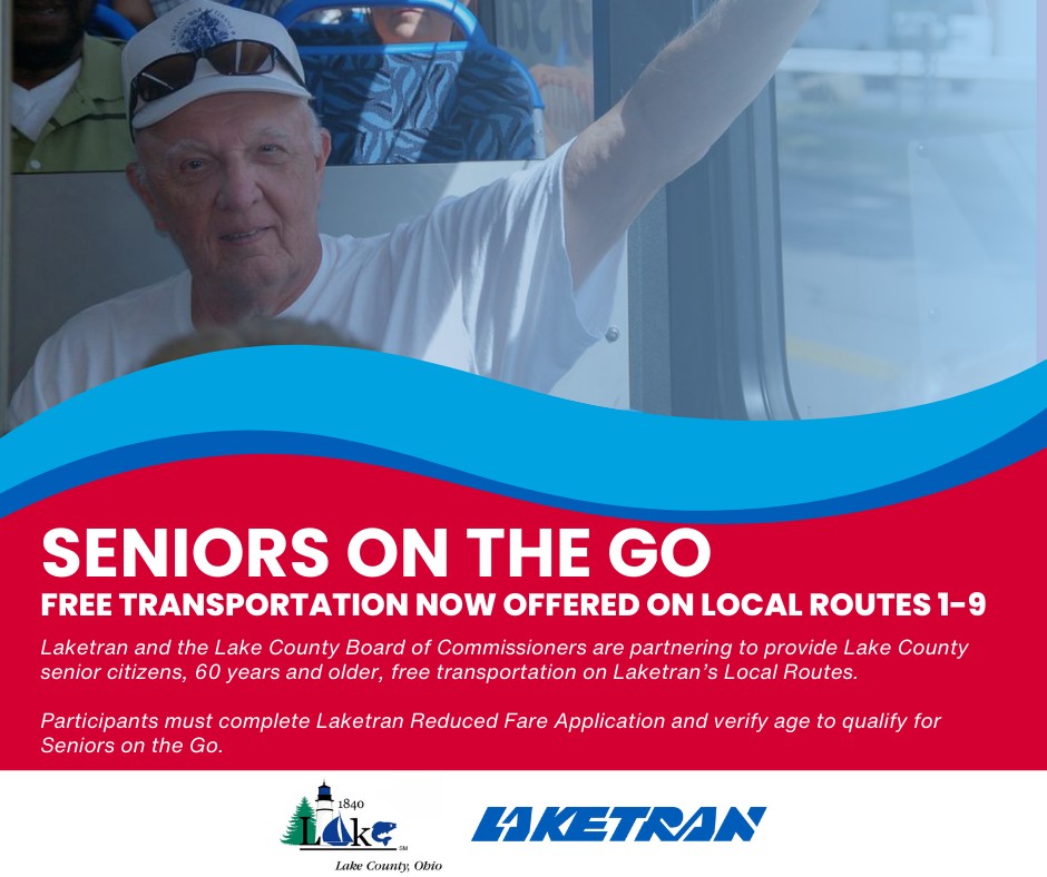 Laketran Board President Brian Falkowski said, “By adding fare-free access to our local routes, we’re giving seniors more independence, more choice, and more opportunities to stay connected to their communities.”