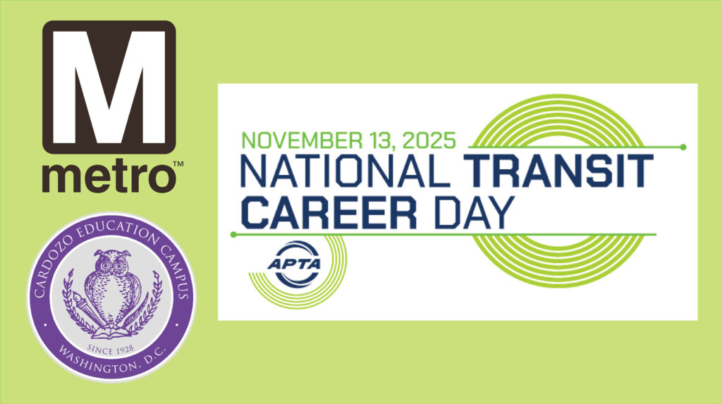 The Washington Metropolitan Area Transportation Authority (WMATA) is collaborating with APTA to host the TransSTEM Academy students of the Francis L. Cardozo Education Campus for National Transit Carer Day. On Nov. 13, 35 students will travel downtown to APTA’s offices to learn about the career journeys of transit social media experts, engineers, planners, project managers, operations and administrative leaders, and more.