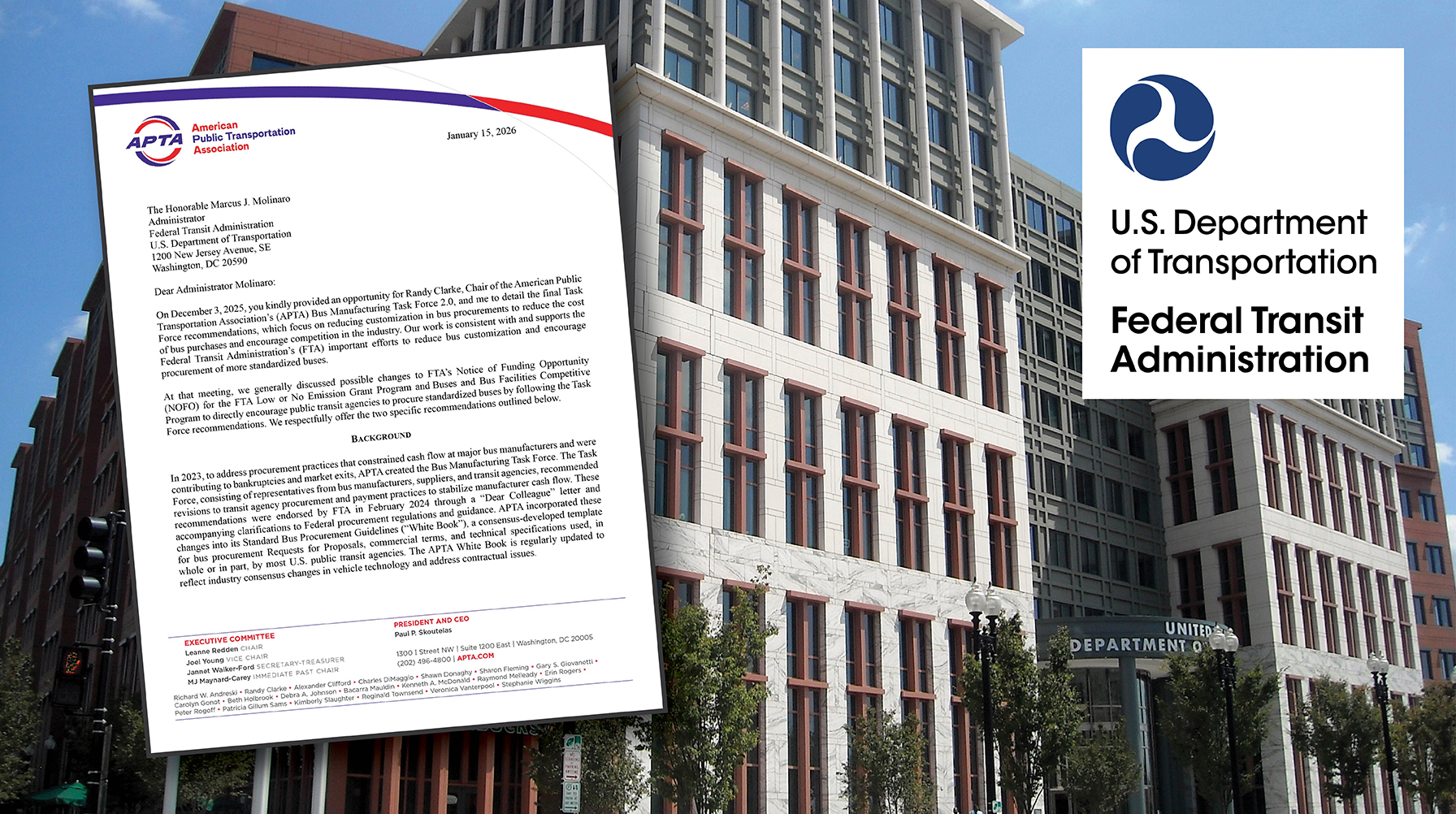 APTA APTA Urges U.S. House to Pass Bipartisan FY26 Transportation Appropriations Bill 2/3/2026 Read More