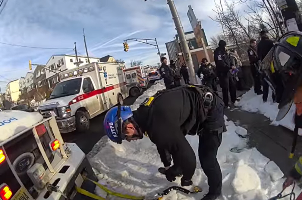In cooperation with the Hoboken Fire Department, NJ TRANSIT Police’s Emergency Services Unit used ropes and a board to secure and hoist the man more than 40 feet up from an icy ravine that he had fallen down.