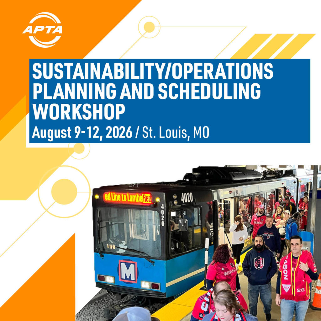 The APTA Sustainability/Operations Planning and Scheduling Workshop, Aug. 9-12 in St. Louis, MO, is open for registration. The workshop is specifically designed for public transportation professionals involved in advancing innovative approaches in sustainability and service planning.
