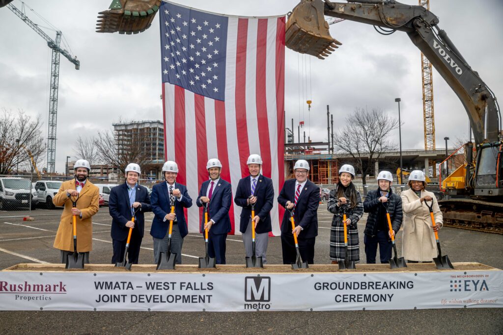 A surface parking lot in Northern Virginia is set to become one of the region’s newest transit-centered neighborhoods. The Washington Metropolitan Area Transit Authority (WMATA), joined by local elected officials and development partners Rushmark Properties and EYA LLC, has broken ground on a major redevelopment project at the West Falls Church Metrorail Station, signaling a shift from car-oriented land use to walkable, transit-supportive growth.